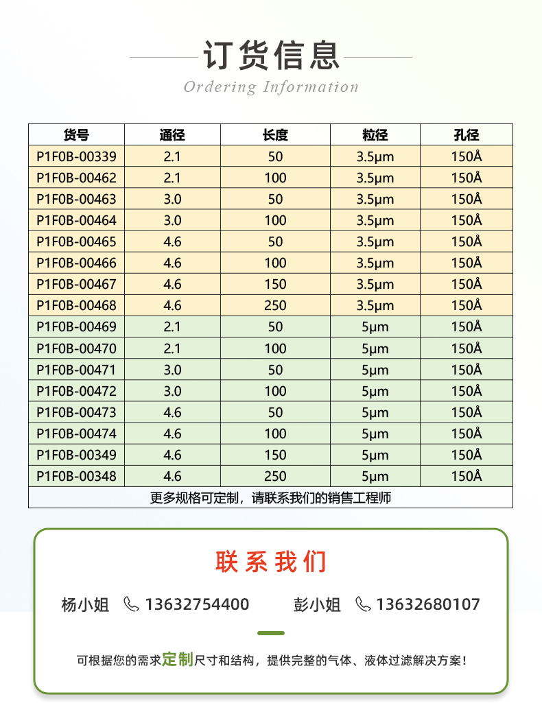 常用產(chǎn)品規(guī)格(mm) 2.1*50、2.1*100、3.0*50、3.0*100、4.6*50、4.6*100、4.6*150、4.6*250