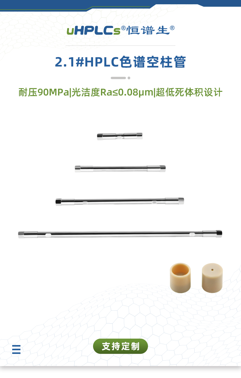 高性能色譜柱空柱,不僅能夠減少頻繁更換高效色譜柱帶來的重新進(jìn)行方法驗證、條件摸索等工作,還大大的降低了使用成本。恒譜生提供種類繁多的HPLC和UHPLC色譜柱硬件,高光潔度高效色譜柱柱管能夠快速分析的同時保持高的柱效,是國外同類型柱管的理想替代品,是高品質(zhì)的色譜耗材。恒譜生的色譜柱硬件系列包括可增強(qiáng)色譜柱功能的保護(hù)附件和連接產(chǎn)品。