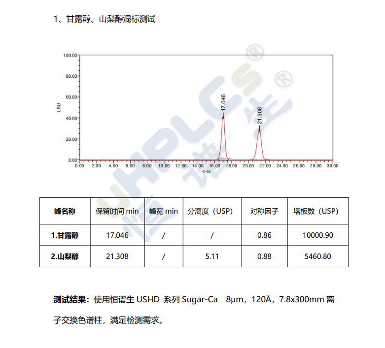 作為在色譜領(lǐng)域深耕二十余年的專家,恒譜生深刻理解糖類與糖醇分析中面臨的分離挑戰(zhàn)。我們隆重推出USHD系列Sugar-Ca離子交換色譜柱。這是一款基于鈣型強(qiáng)陽離子交換樹脂填料的糖醇專用分析柱,專門為高效、精準(zhǔn)分離單糖、二糖及糖醇(如甘露醇、山梨醇)而設(shè)計(jì)。